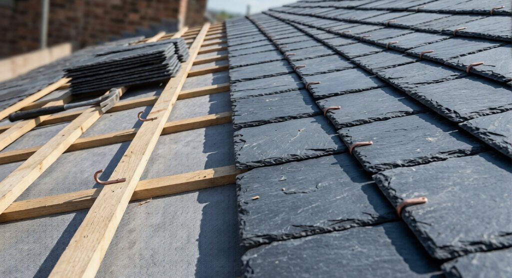 Matériaux maîtrisés : Nous travaillons avec précision la tuile (terre cuite, béton), l’ardoise (naturelle ou synthétique), le zinc, ainsi que les bacs acier.